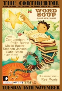 Three months since my last post? Please award me the laziest blogger award. I’m working on the last few stories and Comma Press are being very patient with me. More about the stories later, but in between frowning at my little netbook (how I write on it I don’t know) and stressing about the letters on my netbook’s screen, I’ve been involved in a few literary events and things. Tomorrow I’m reading at wordsoup in Preston. I unfortunately couldn’t read there last December, when it was run by Jenn Ashworth because I slipped on the ice (I fall over a lot) and twisted my ankle. So hopefully I will make it there tomorrow without any mishaps.